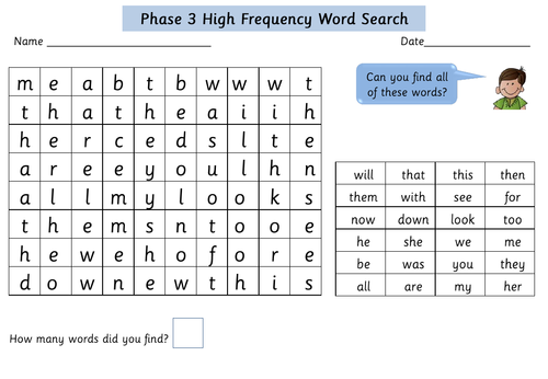 t 200 high frequency word mat or word bank (high frequency words). The words are split betw